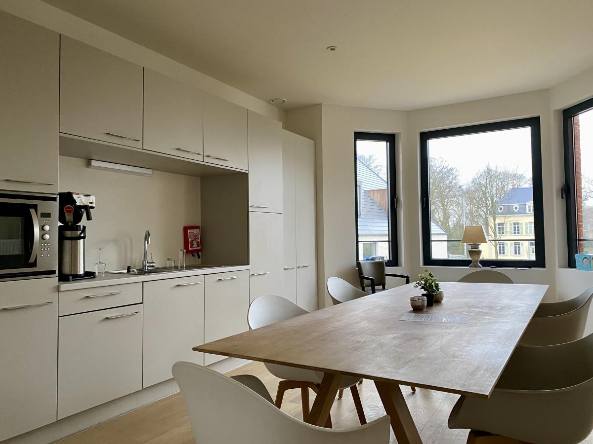 ’s Middags kunt u genieten van een heerlijke keuken. De brasserie staat open voor iedereen. Er is een zithoek en terras voorzien waar de bewoners kunnen genieten van een koffietje terwijl ze genieten van de rust of zich verdiepen in een spannend boek.